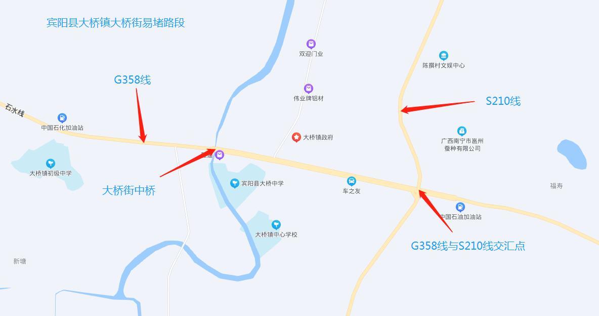 (一)G358線K1594+000~K1595+500大橋鎮(zhèn)大橋街路段全長(zhǎng)1.5公里,該路段為過(guò)街路段且為G358線與S210線交匯點(diǎn),交通量大,私家車、中輕型貨車、摩托車和電動(dòng)自行車混合交通,該路段機(jī)動(dòng)車平均日交通量達(dá)到14956輛/日,交通流量大,通行緩慢,易造成擁堵。過(guò)往車輛需減速緩慢通過(guò),建議繞行蒼碩高速、柳南高速、上橫高速等。