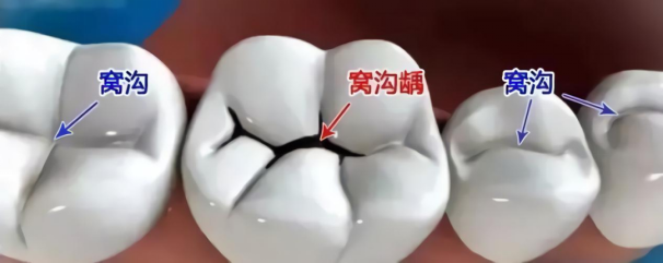 兒童的乳牙和年輕恒牙因?yàn)閯倓傞L出來沒多久,牙齒牙齒表面存在很多凹凸不平的部位,凹陷部位稱為窩溝,主要的作用為碾碎食物。但食物殘?jiān)紫萑敫C溝內(nèi),由于不易清潔、無法去除其內(nèi)的細(xì)菌,久而久之菌斑堆積,促使齲病的發(fā)生。